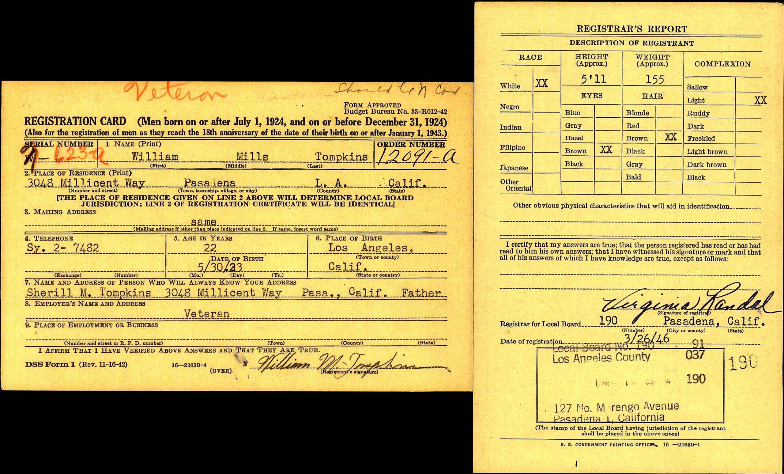 He was preceded in death by his son Robert Tompkins. A funeral mass is scheduled for Saturday, August 26th at 10:00 a.m. at Immaculate Conception Church in Old Town, 2540 San Diego Ave.,San Diego, California 92110, phone: (619) 295-4141, with a reception to follow. All are welcome to attend. (San Diego Union-Tribune on Aug. 24, 2017)